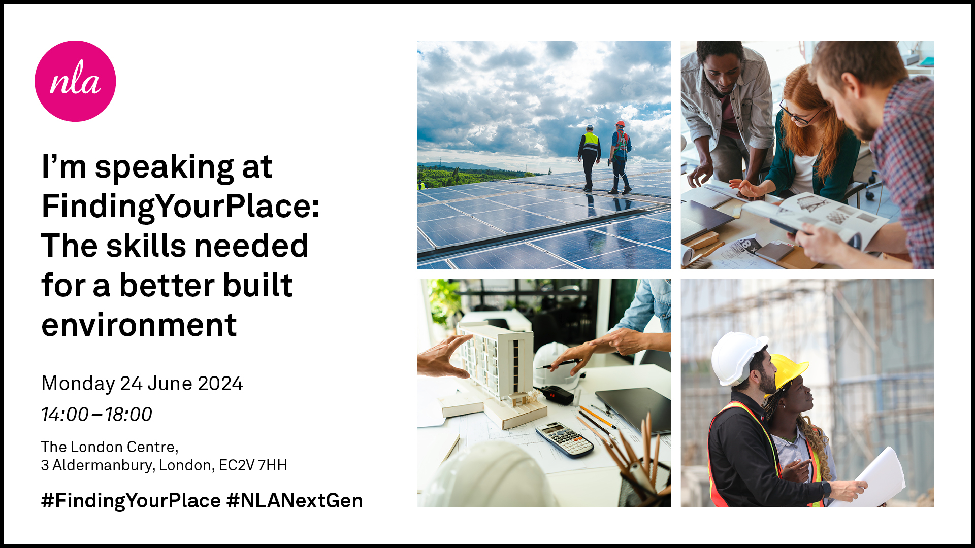 I'm looking forward to attending @NLA’s FindingYourPlace: the skills needed for a better built environment conference on Monday 24 June at The London Centre! 🛠