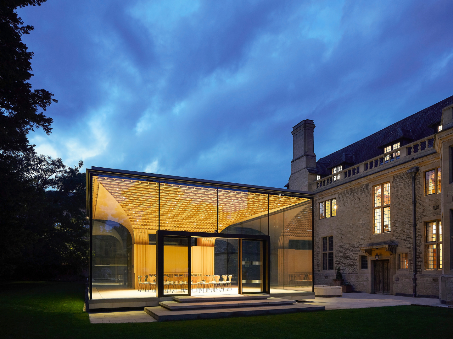 Yes, thanks for the question. Embodied carbon case studies are something we have started working on this past autumn, and the idea is to focus primarily on the upfront carbon - so stages A1 to A5 up to practical completion - and to build an internal database for Stanton Williams which will work as a knowledge baseto inform future projects and help us more accurately predict how our design choices will impact a building’s carbon footprint . We considered quite a diverse range of building typologies - from office to residential, higher education, sciences and technology and beyond - at different RIBA stages. We looked at buildings that have been recently completed, as well as live projects. We began with the transformation of Rhodes House, a Grade II listed building in Oxford which exemplifies Stanton Williams' approach to adaptive reuse and working with existing buildings – a key concern for the practice. We opted for a tailored sustainability strategy to deal with the peculiarity of the heritage building and both site and program. When we began working on the project embodied carbon was not really at the forefront of any sustainability discussion. We realised that it was going to be important to look at the virtues of the project from a carbon perspective..