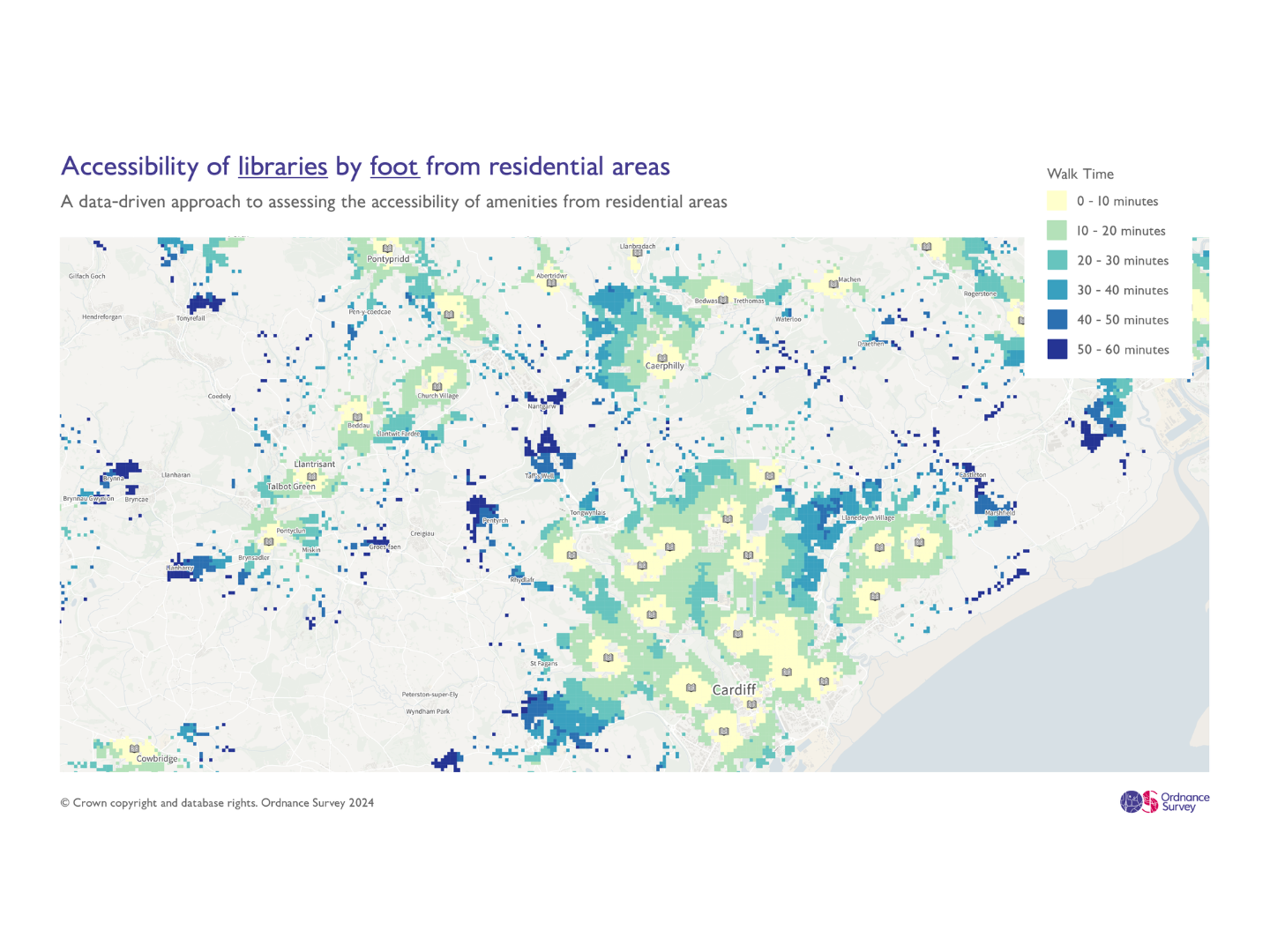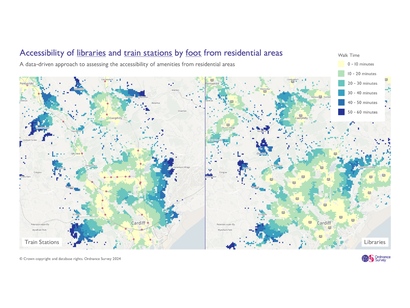 For example, OS data has been used to understand a given location’s access to amenities, to better inform planning and development. The Office for National Statistics (ONS) worked with OS for location expertise and insight, focusing on a property’s access to two key amenities: railway stations, and libraries. The project was a succinct demonstration of what becomes possible. While it focused on existing properties, if new housing was planned with that access to local amenities in mind, it would help to sustain surrounding communities, and contribute significantly to a property’s desirability, right from the start.