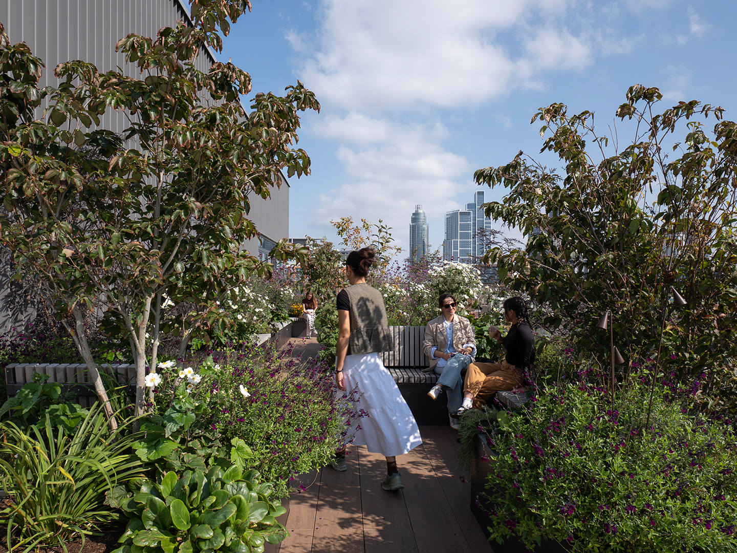Alongside this biophilic approach, access to outdoor space and fresh air for tenants was equally as important. Each floor opens out onto landscaped terraces, culminating in a tranquil rooftop garden with views over London that supports both biodiversity and wellbeing. Designed with nature and people in mind, the roof-top garden is more than a visual amenity - it’s a space to work, recharge or simply breathe.