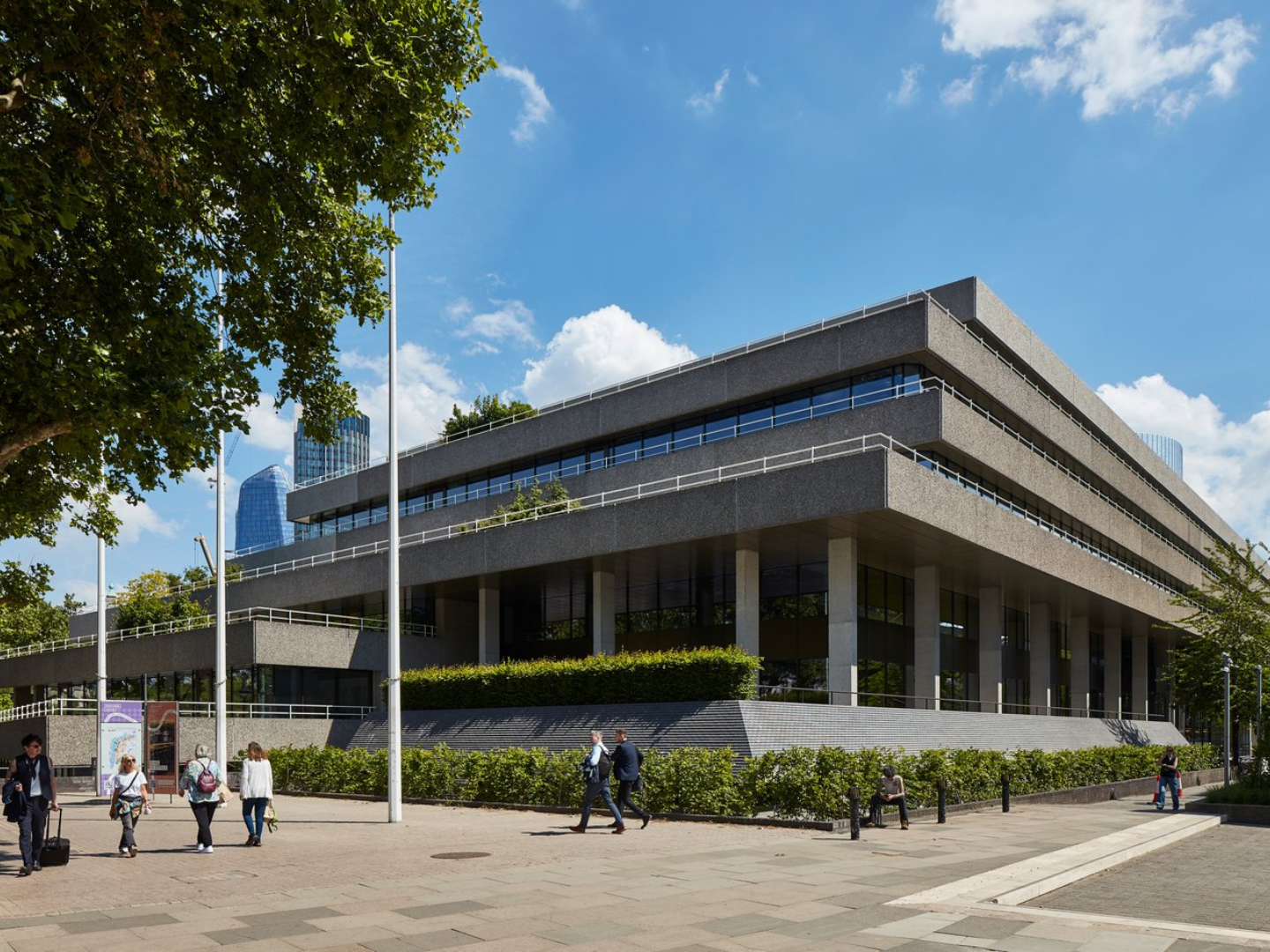 Designed by Sir Denys Lasdun and completed in 1983, 76 Upper Ground started life as the office and client marketing building for IBM. It is considered Lasdun’s last major work and sits adjacent to his National Theatre.