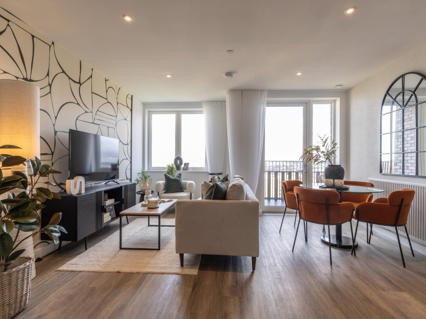 Linda Graham was one of the first residents to move into Conductor House in March 2025. Linda shared with us: “I’m absolutely over the moon with my new apartment! The open layout and three large windows that bring in so much natural light are just perfect. The specification is incredible, and it’s a huge step up from my previous flat, where I didn’t have much outdoor space. Now, I’ve got a large balcony with room for a table and chairs that overlooks the park. Throughout the process, I was able to work with the team to add personal touches such as modifying and enhancing the bathroom, which were really important for me as I look ahead to later living. I can’t wait to play with my three grandchildren in the park and take my dogs for walks.”