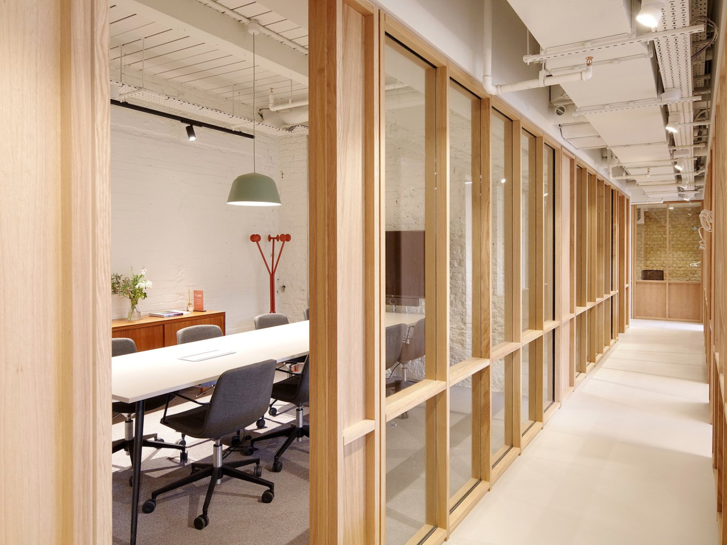 Previously absorbed by a shopping mall and stripped of its identity, the building now features a reinstated entrance on Queen’s Road, re- establishing its connection with the street and community. The ground floor café welcomes the public, while upper floors provide flexible coworking spaces that blend original architectural features with new interventions. Throughout, materials were chosen for longevity and character—most notably the consistent use of oak timber for partitions, desks, and furniture, offsetting the robust brick and concrete fabric.