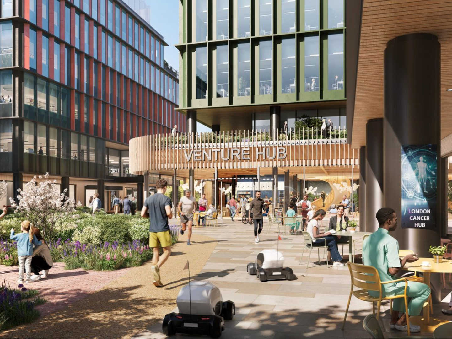 Designed for longevity and adaptability, the district will be delivered through eight flexible buildings arranged around green public spaces. It will include 150 new trees, with the running trail linking into a 1km route around the hospital and ICR, thus promoting wellness, activity, and connection to nature. An inclusive approach to design ensures neurodiverse friendly features, on-site childcare, and enhanced accessibility throughout the site.