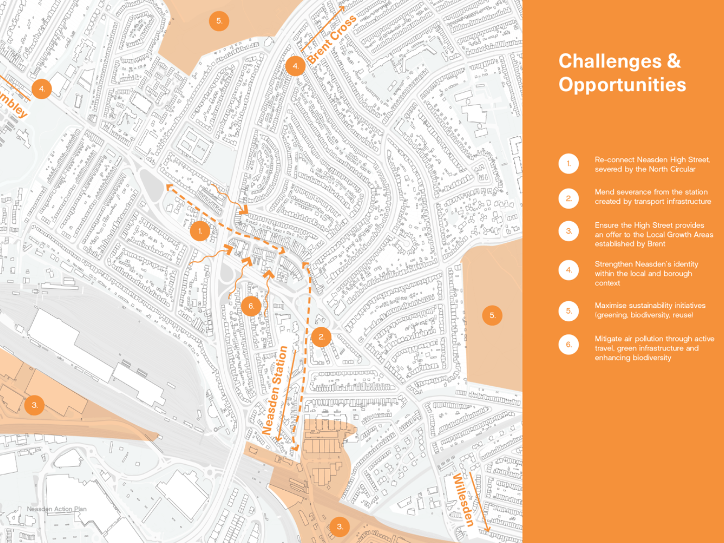 Located in the LB Brent, Neasden faces environmental, social, and economic challenges, including traffic dominance, poor air quality, and severed connections to nearby neighbourhoods.