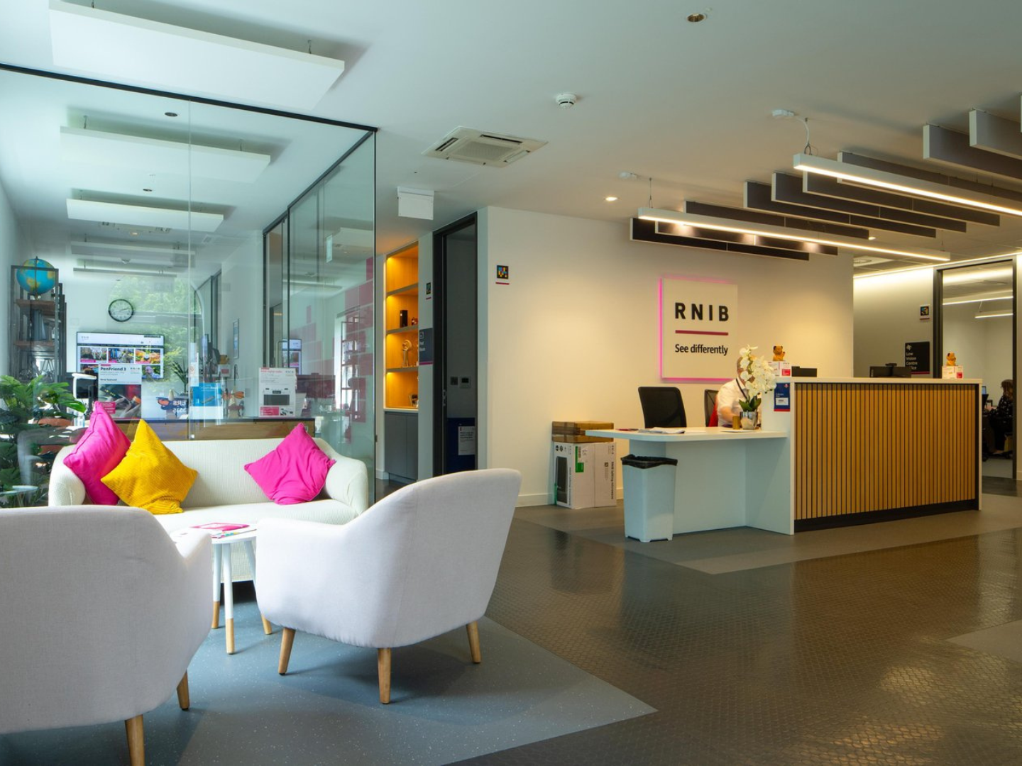 RNIB, the Royal National Institute of Blind People (the UK's leading sight loss charity) relocated its London Headquarters in 2023. The Grimaldi Building required an extensive retrofit to ensure it was fully accessible and inclusive for RNIB colleagues, 15% of whom are registered blind or partially sighted.