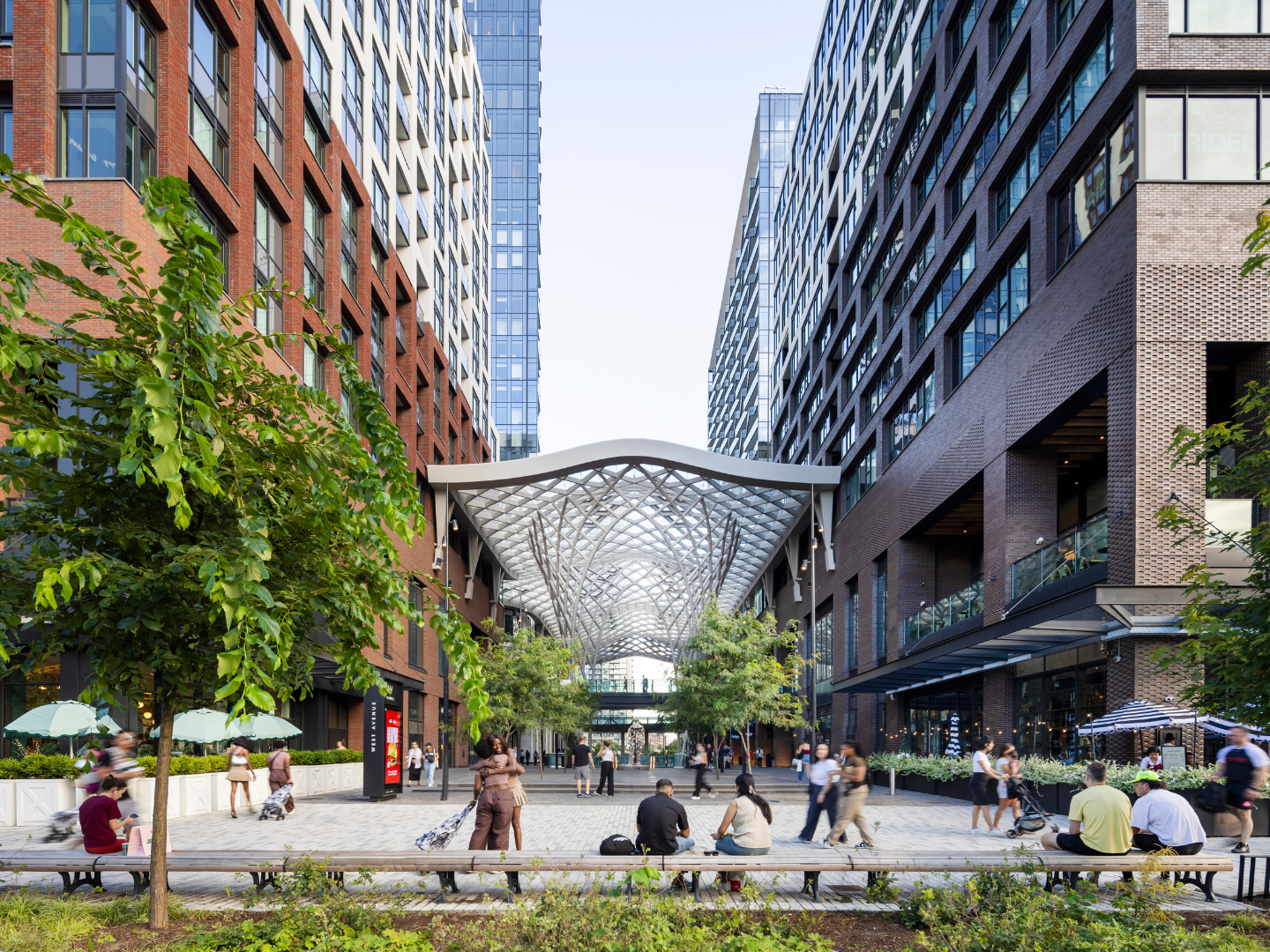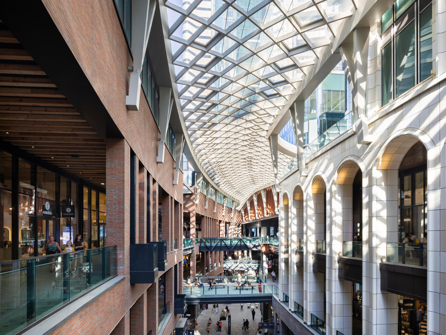 The use of wood, brick, and terra cotta-coloured steel throughout the development reflects the industrial heritage of King West, creating a design language that bridges the past and future. This integration of historic references into a forward-looking urban space exemplifies a thoughtful blend of tradition and modernity, honouring the area's rich history while providing a contemporary setting for retail and social activities.