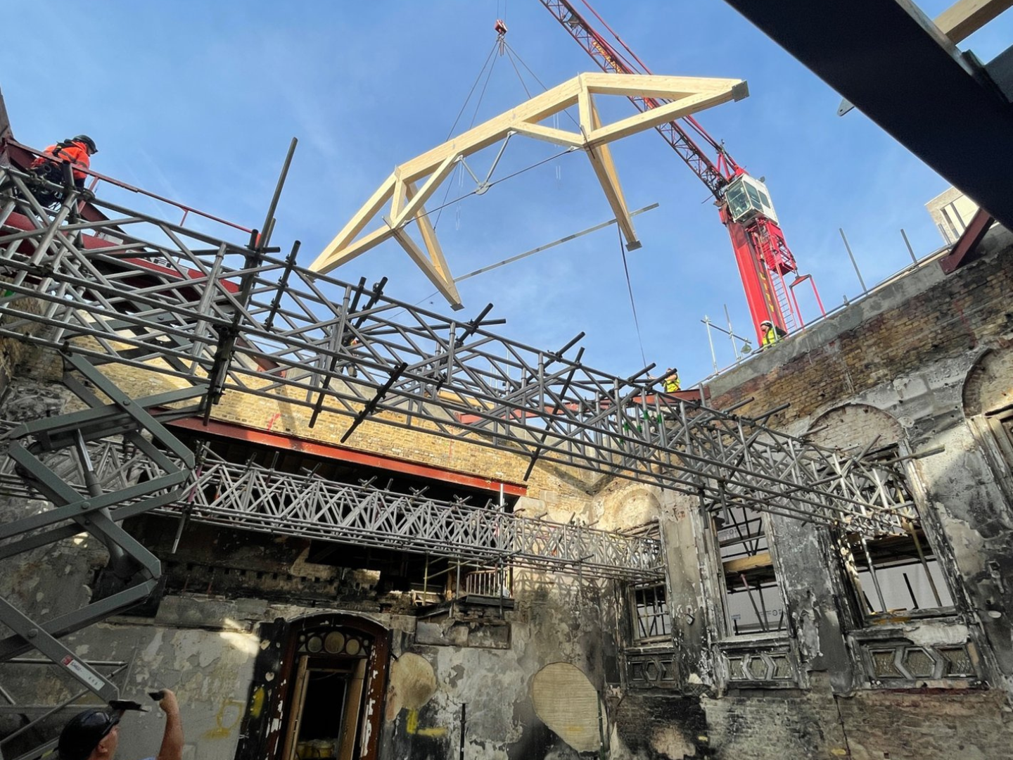 The project sets a benchmark for heritage-led regeneration and adaptive reuse that honours architectural legacy while enabling meaningful new uses. Whilst a handful of spaces were restored in a scholarly way, meticulously restoring historic features, including plasterwork, tiling and timber panelling, the ‘light-touch’ approach in the majority of spaces, rather than erasing the past, retained and celebrated the historic fabric as found, with fire-scarred elements left visible enabling visitors to experience the building’s rich narrative, its scars telling a story of resilience and transformation