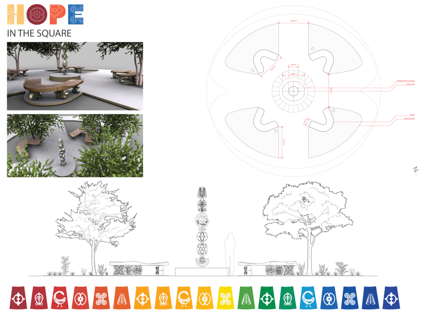 By offering a new take on traditional West African symbolism, we’re aiming to explore the concept of hope within a uniquely Peckham context. We want to create a future focal point for art and storytelling, offering passers-by a place to slow down and tune in to their own place of creativity and all that this space represents.”