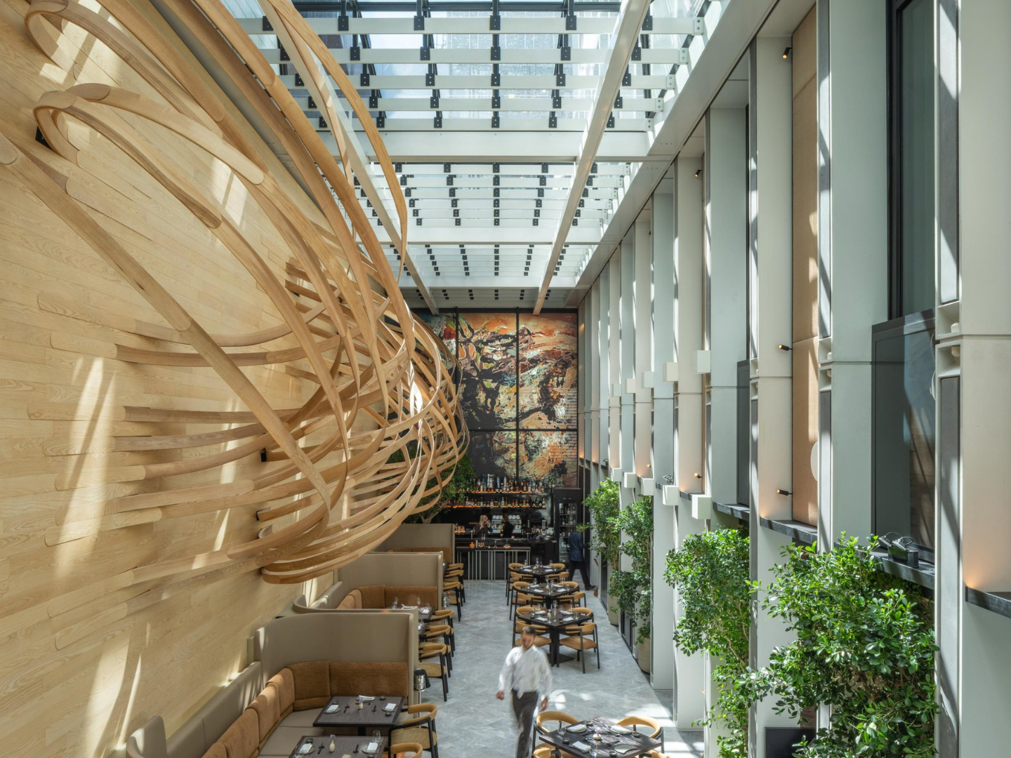 The building employs a Vierendeel structural frame, a pioneering approach in the UK, which utilises rectangular frames without diagonal members. This design choice allows for expansive internal spaces and a unique façade characterised by the UK’s longest handmade red brick ‘baguettes’. These elements draw inspiration from the surrounding Georgian architecture, creating a harmonious blend of modern and traditional aesthetics. They seek to achieve a contemporary language that responds to the rhythm, articulation, colouration and proportion of the local context. The steel and concrete exoskeleton structure is highly crafted and scaled to ensure legibility.
