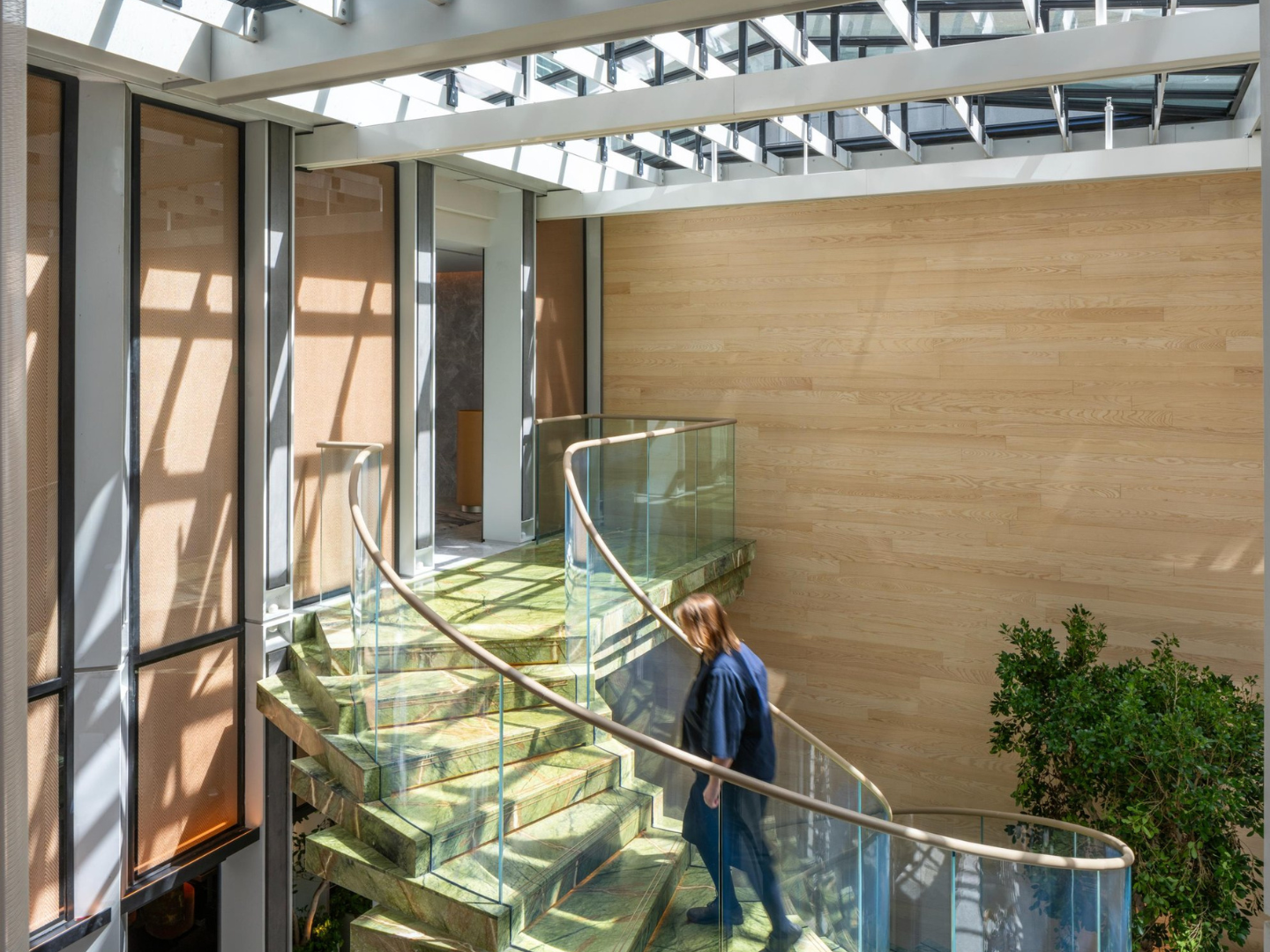 The building’s section resolves a complex spatial puzzle with the bulk of the building located within the centre of the city block, with a smaller percentage articulated towards Hanover Square and Brook Street. The building is formed of two ‘pavilion’ towers, connected by a glazed stair and lift core that links all levels, whilst permitting natural light to flood deep into the plan and lower-ground floors.